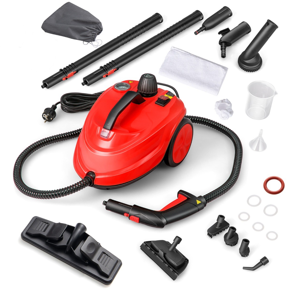 Transformeer uw huis in een onberispelijke oase met onze super efficiënte 2000 W stoomreiniger! Hij verwarmt in slechts 8 minuten en geeft een krachtige stoom van 5 bar en 160°C vrij, die moeiteloos vet en vuil verwijdert – helemaal zonder chemicaliën! De grote 1,8 L watertank biedt 30 minuten ononderbroken reinigingstijd. Bij de levering is een 15-delige set inbegrepen, waarmee u elke schoonmaaktaak kunt meester. Het lange snoer en de soepel bewegende wielen zijn eenvoudig te navigeren en te manoeuvreren. De veiligheidsvergrendeling geeft u bovendien een veilig gevoel. De stoomreiniger is compact en wordt geleverd met een draagtas waarin de accessoires netjes kunnen worden opgeborgen. Attributen: 【Krachtige hoge temperatuur stoom】: Ervaar een diepe, grondige, chemicaliënvrije reiniging met de 2000W stoomreiniger. Hij warmt snel op in slechts 8 minuten en levert een krachtige 5 bar, 160°C stoom die moeiteloos vet en vuil op verschillende oppervlakken afbreekt. 【Grote tank & minder bijvullen】: De stoommop beschikt over een grote 1,8 l watertank die tot 30 minuten ononderbroken stoom levert, waardoor hij ideaal is voor grote oppervlakken tot 108 m². De meegeleverde trechter en maatbeker maken het vullen van water kinderspel. 【All-in-one accessoires】: De 15-delige, veelzijdige accessoireset is geschikt voor elke schoonmaaktaak. Of u nu vloeren schrobt, ramen en spiegels reinigt, bekleding strijkt of rommel in de keuken en badkamer opruimt, de drukstoomreiniger met uitgebreide accessoires staat voor u klaar. 【Eenvoudig te verplaatsen & meer bereik】: Deze draagbare reinigingsmachine is ontworpen om eenvoudig te gebruiken, met een 142 cm lange slang, 2 verlengbuizen en een 500 cm lange netsnoer, zodat u zich niet meer hoeft te bukken of knielen! Met de handgreep, de universele wielen en de 2 eenmalige wielen kunt u zich gemakkelijk door de ruimte bewegen. 【Veiligheidsontwerp】: Geef prioriteit aan uw veiligheid met de doordachte ontwerpelementen van de veelzijdige stoomreiniger. Er is een stoomafvoer met een veiligheidsvergrendeling om onopzettelijke activering te voorkomen en een tankdop die als veiligheidsventiel fungeert en tijdens gebruik een veilige hoge isolatie waarborgt. 【Compacte grootte & eenvoudige opslag】: De compacte afmetingen van 37 x 26 x 25 cm (L x B x H) en de houder voor accessoires maken de huishoudreiniger gemakkelijk op te bergen. Een opbergtas voor alle accessoires is inbegrepen. Kenmerken: Snel opwarmen in 8 minuten, 5 bar hoge druk en 160°C hoge temperatuur 1,8L tankcapaciteit zorgt voor 30 minuten gebruikstijd en 108 m² dekking 2 verlengbuizen en 142 cm lange slang zorgen voor uitgebreid bereik Draagbare handgreep, universele wielen en 2 eenmalige wielen voor gemakkelijke manoeuvreerbaarheid Veiligheidsbeugel voorkomt onopzettelijk spuiten Manometer, tankdop en veiligheidsventiel waarborgen veilig gebruik Opbergtas voor ruimtebesparende opslag