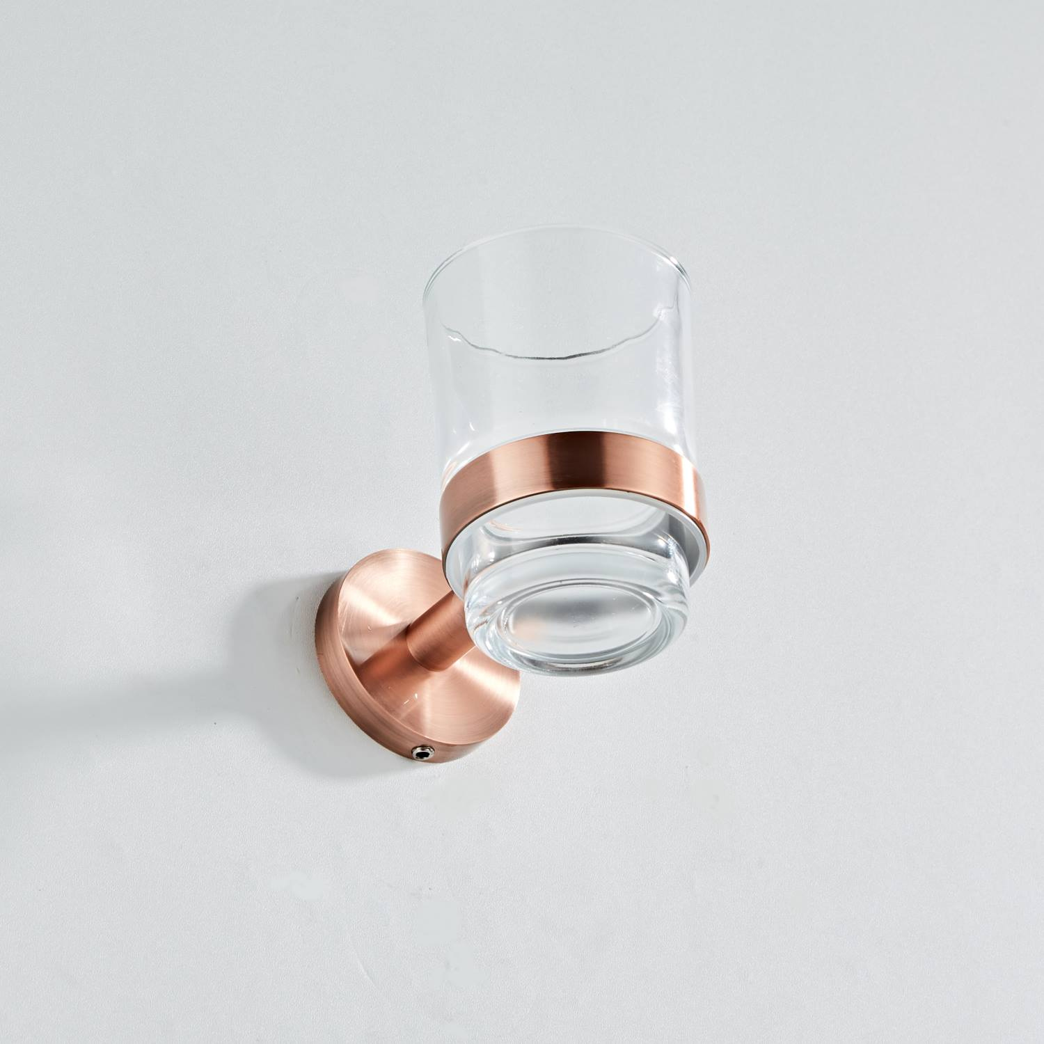 De glashouder van de serie Copper wordt standaard met glas geleverd. In de ring zit een kunststof strip verwerkt, zodat het glas niet in aanmerking komt met het metaal. Het glas heeft een diameter van 6.5 cm. Ook heeft de serie meerdere accessoires zodat u uw badkamer kunt combineren met andere elementen uit de serie. Zo voorkomt u kleurverschil in uw accessoires.