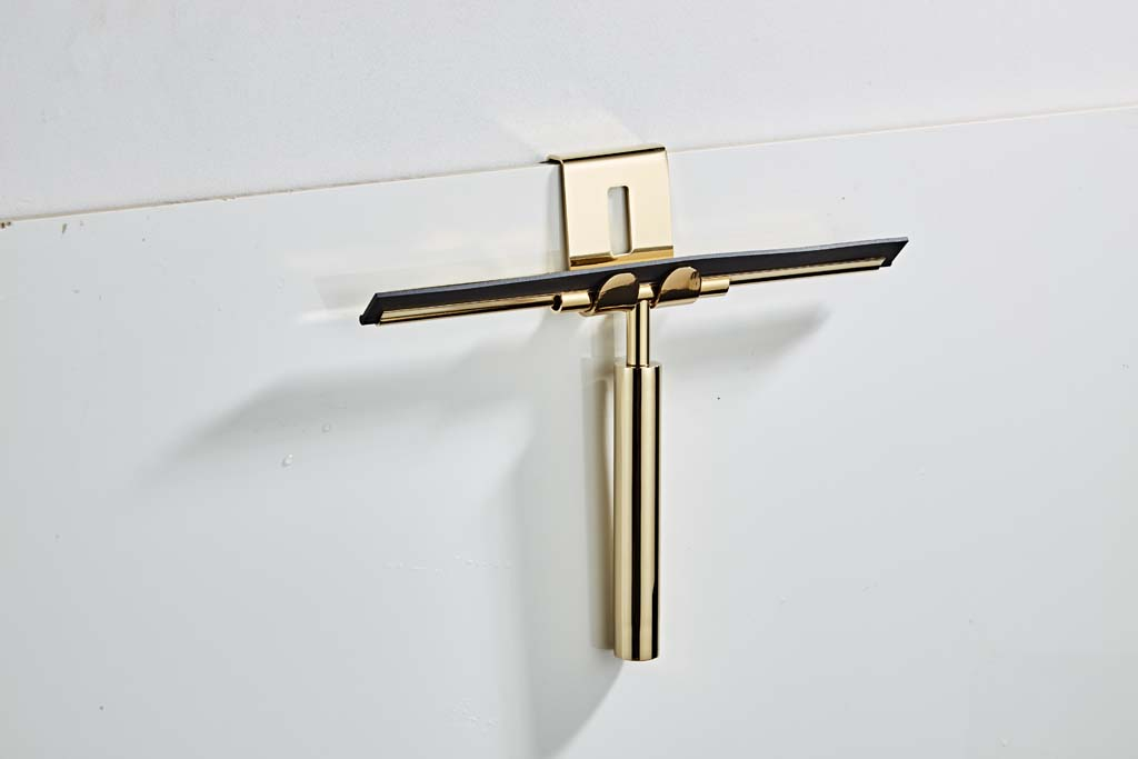 De badkamerwisser van Saniclear is hetgene wat je nodig hebt, als je extra lang plezier wilt van jouw glaswerk. Door na elke douchebeurt het glas droog te trekken met deze wisser, blijft jouw glaswand netjes. Het handige aan deze wisser is dat je ‘m eenvoudig aan je glaswand ophangt. De meegeleverde houder plaats je op de glaswand en de wisser plaats je in de halfronde haakjes eronder. Zo heb je ‘m altijd meteen bij de hand. Deze wisser is geschikt voor glaswanden met een dikte tot en met 10mm. Aan de binnenkant van de haakjes die over de glaswand vallen, zit rubber, zodat jouw glaswand niet beschadigd. Specificaties Merk: Saniclear Serie: Dorado Kleur: Goud glans Breedte: 25cm Met houder Voor glaswanden t/m 10mm dikte Saniclear Dorado accessoires Wist je dat de Dorado serie nog veel meer accessoires in petto heeft? Deze accessoires zijn heel uiteenlopend, van wisser tot toiletborstel. Zo kun je jouw hele badkamer en toilet voorzien van deze perfect, matchende parels in het goud. Alle accessoires zijn gemaakt van messing, waardoor jij nog jarenlang plezier hebt van de items. Ze zullen namelijk niet gaan roesten of oxideren. De volgende accessoires vind je in de Dorado serie: Handdoekhouder Glashouder Zeepdispenser Handdoekhaak Toiletrol houder Reserverol houder Toiletborstel Shampoo houder voor aan de muur Shampoo houder voor over je glaswand Raamwisser Vloerwisser Inbouw toiletrolhouder zonder klep Inbouw toiletrolhouder met klep