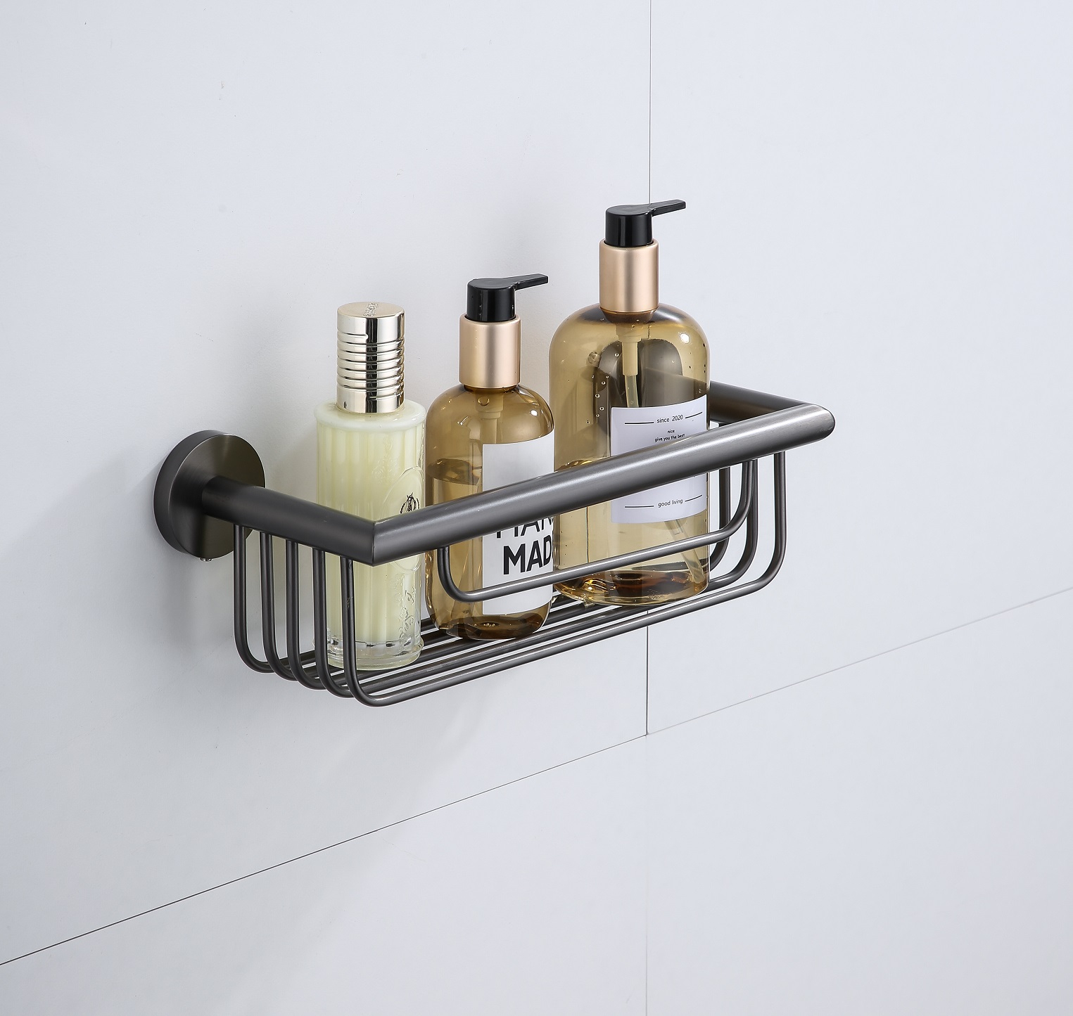 De shampoohouder, ook wel doucherek genoemd, van Saniclear is de plek voor al jouw shampooflessen. De shampoohouder is zo ontworpen dat er plek is voor 6 à 7 doucheflessen. Door de dikke rand aan de bovenkant blijven de flessen goed staan en vallen ze er niet snel uit. Het compacte formaat maakt de shampoohouder perfect voor doucheruimtes, maar ook voor bij bijvoorbeeld het bad. De shampoohouder is voorzien van messing bevestigingsplaatjes. Deze plaatjes kunnen gelijmd of geschroefd worden tegen de muur. Ideaal als je bijvoorbeeld niet in de muur mag boren. Onder de toebehoren vind je de lijm. De schroeven krijg je meegeleverd met de houder. Specificaties Merk: Saniclear Serie: Iron Kleur: Verouderd ijzer (gunmetal) Breedte: 30cm Diepte: 12.5cm Hoogte: 9cm Met bevestigingsmateriaal Saniclear Iron accessoires Wist je dat de Iron serie nog veel meer accessoires in petto heeft? Deze accessoires zijn heel uiteenlopend, van wisser tot toiletborstel. Zo kun je jouw hele badkamer en toilet voorzien van deze perfect, matchende parels in het verouderd ijzer. Alle accessoires zijn gemaakt van messing, waardoor jij nog jarenlang plezier hebt van de items. Ze zullen namelijk niet gaan roesten of oxideren. De volgende accessoires vind je in de Iron serie: Handdoekhouder Glashouder Zeepdispenser Handdoekhaak Toiletrol houder Reserverol houder Toiletborstel Shampoo houder voor aan de muur Shampoo houder voor over je glaswand Raamwisser Vloerwisser Inbouw toiletrolhouder zonder klep Inbouw toiletrolhouder met klep