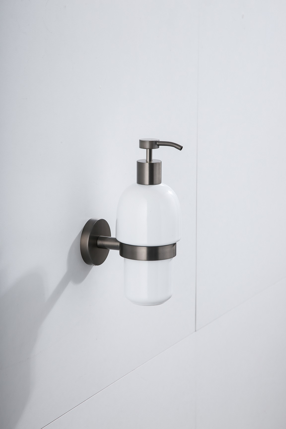 De Saniclear zeepdispenser is als een feestje voor je handen. Met een druk op de knop was je jouw handen met jouw favoriete zeep. Wil je een keer een ander geurtje? Geen probleem, dan kun je ‘m gewoon hervullen met een andere zeep. Je haalt de zeepdispenser eenvoudig uit de houder. Door de siliconenrand in de houder blijft de zeepdispenser stevig zitten. De zeepdispenser is voorzien van een messing bevestigingsplaatje. Dit plaatje kan gelijmd of geschroefd worden tegen de muur. Ideaal als je bijvoorbeeld niet in de muur mag boren. Onder de toebehoren vind je de lijm. De schroeven krijg je meegeleverd met de zeepdispenser. Specificaties Merk: Saniclear Serie: Iron Kleur: Verouderd ijzer (gunmetal) Hoogte: 19cm Diepte: 11cm Met bevestigingsmateriaal Saniclear Iron accessoires Wist je dat de Iron serie nog veel meer accessoires in petto heeft? Deze accessoires zijn heel uiteenlopend, van wisser tot toiletborstel. Zo kun je jouw hele badkamer en toilet voorzien van deze perfect, matchende parels in het verouderd ijzer. Alle accessoires zijn gemaakt van messing, waardoor jij nog jarenlang plezier hebt van de items. Ze zullen namelijk niet gaan roesten of oxideren. De volgende accessoires vind je in de Iron serie: Handdoekhouder Glashouder Zeepdispenser Handdoekhaak Toiletrol houder Reserverol houder Toiletborstel Shampoo houder voor aan de muur Shampoo houder voor over je glaswand Raamwisser Vloerwisser Inbouw toiletrolhouder zonder klep Inbouw toiletrolhouder met klep