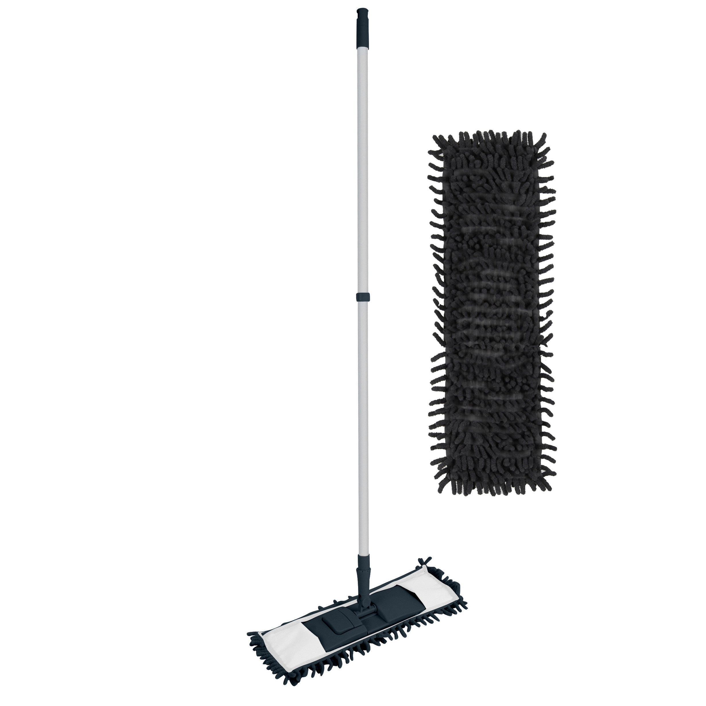 De Urban Living Vloerwisser met 2x microvezel doek/dweil met grote noppen, in de kleur blauw, is een doeltreffend schoonmaakinstrument dat ontworpen is voor effectieve vloerreiniging. De microvezel constructie van de wisser staat garant voor een grondige verwijdering van stof en vuil, waardoor je vloeren schoon en glanzend blijven. De meegeleverde steel zorgt voor ergonomisch gebruik, terwijl de verstelbare functie je in staat stelt de lengte aan te passen aan jouw voorkeuren. Met de toevoeging van een vloertrekker wordt niet alleen vuil verwijderd, maar wordt ook water efficient weggeveegd, waardoor je vloeren snel drogen. Deze vloerwisser is een handig en veelzijdig hulpmiddel om je leefruimte schoon en fris te houden.