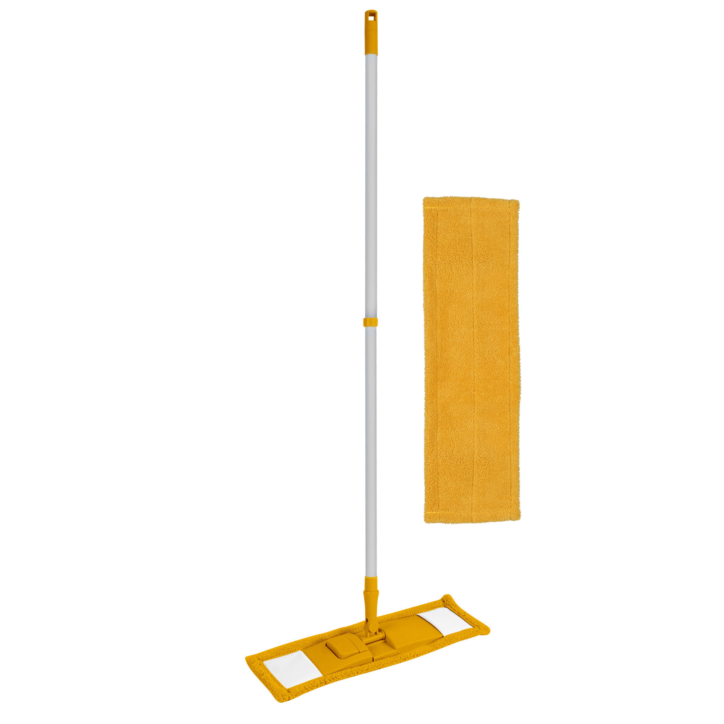 Uitschuifbaar tot 118 cm. , Dit artikel bestaat uit:, 1x Vloerwisser microvezel – met steel – verstelbaar – vloertrekker- geel, 1x Vloerwisser microvezel doek – geel – Extra reserve dweil – voor Benson vloerwisser