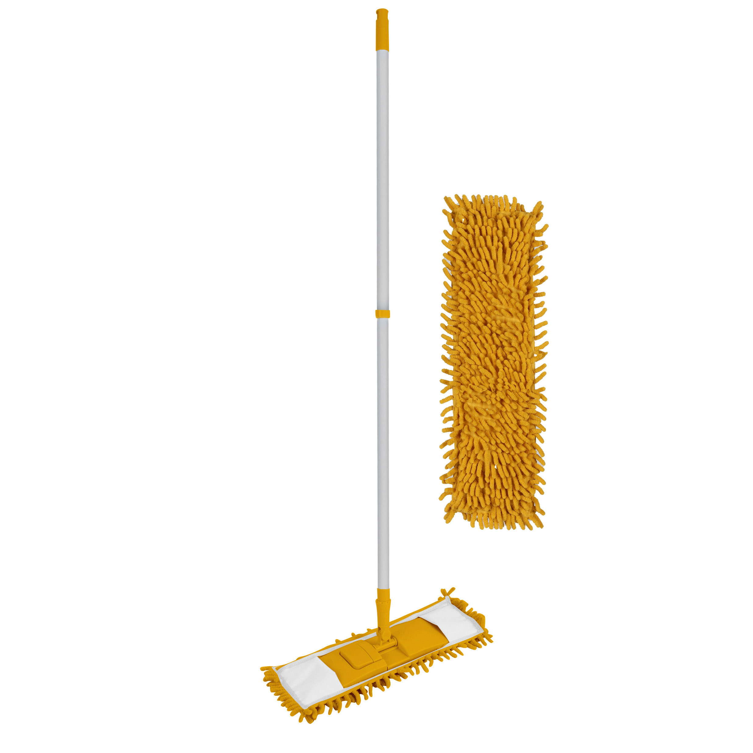 De Urban Living Vloerwisser met 2x microvezel doek/dweil met grote noppen, in de kleur geel, is een doeltreffend schoonmaakinstrument dat ontworpen is voor effectieve vloerreiniging. De microvezel constructie van de wisser staat garant voor een grondige verwijdering van stof en vuil, waardoor je vloeren schoon en glanzend blijven. De meegeleverde steel zorgt voor ergonomisch gebruik, terwijl de verstelbare functie je in staat stelt de lengte aan te passen aan jouw voorkeuren. Met de toevoeging van een vloertrekker wordt niet alleen vuil verwijderd, maar wordt ook water efficient weggeveegd, waardoor je vloeren snel drogen. Deze vloerwisser is een handig en veelzijdig hulpmiddel om je leefruimte schoon en fris te houden.